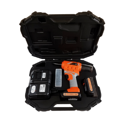 • Interchangeable nose piece can accommodate rivet mandrel sizes 3/32", 1/8", 5/32" and 3/16" included in the carrying case.